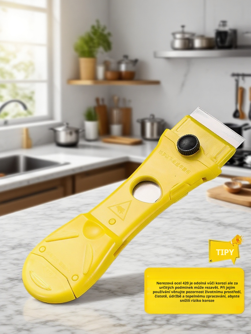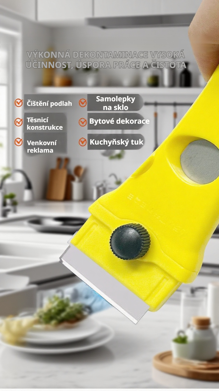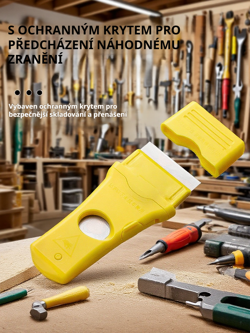 Špachtle na odstranění lepidla, praktické a ostré, bezpečné používání